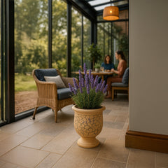 Beige Anduze Terracotta Outdoor Planter brings timeless French garden elegance to patios, entryways, or terraces. Featuring the signature Anduze silhouette with decorative detailing, each planter is handmade from natural terracotta and finished in a soft beige tone. Its classic form pairs beautifully with shrubs or topiary, blending artisanal craftsmanship with refined outdoor style. Ideal for upscale garden settings.