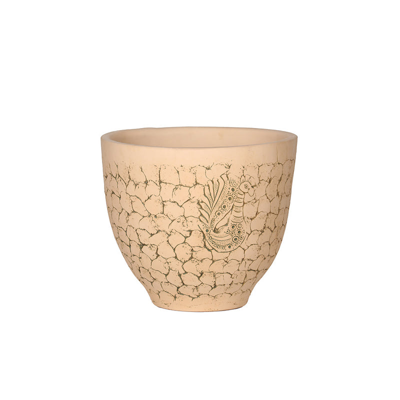 Peacock Cream Textured Terracotta Outdoor Flower Pot