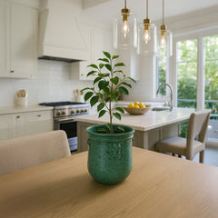Handmade with a weathered green finish, the Verdigris Patina ceramic flower pot evokes the beauty of aged copper and antique gardenware. Its textured glaze and subtle tonal variations bring a rustic elegance to indoor shelves or outdoor corners. Perfect for herbs, florals, or trailing greenery, the sturdy ceramic form supports healthy root growth while doubling as a decorative accent in classic and contemporary settings.