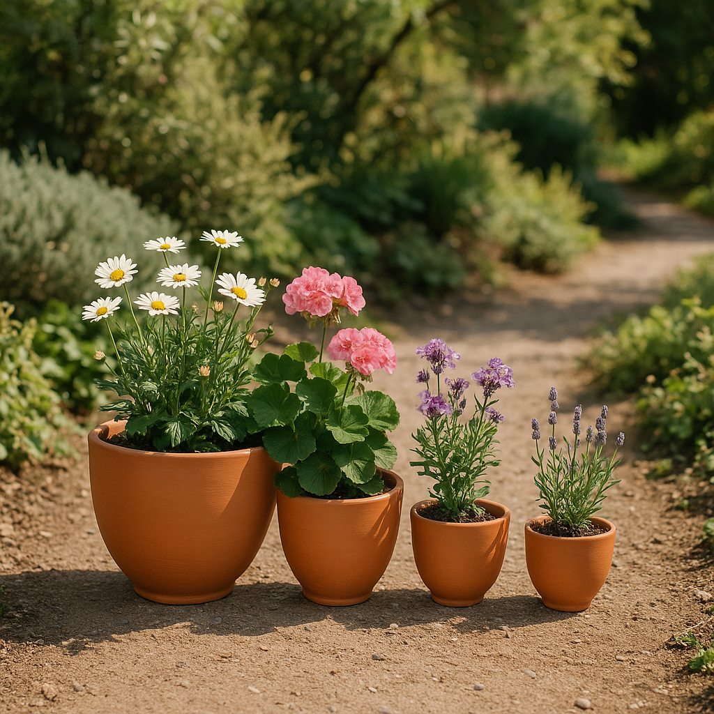 Klassisches rundes Terrakotta-Blumentopf-Set