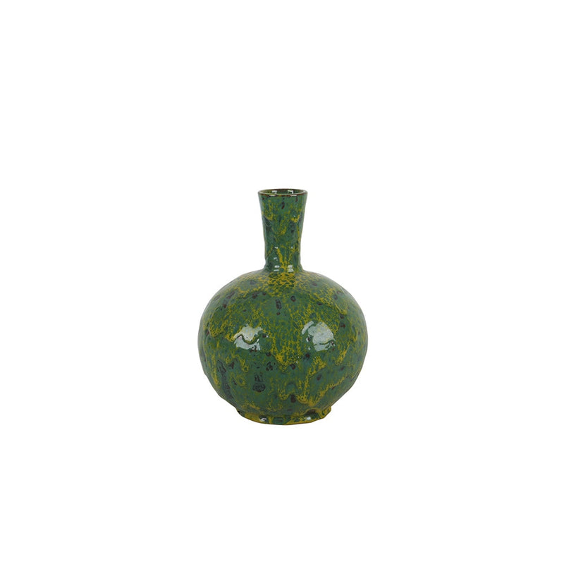 Dekorative Keramikvase mit rundem Korpus aus grünem Lava-Gewebe