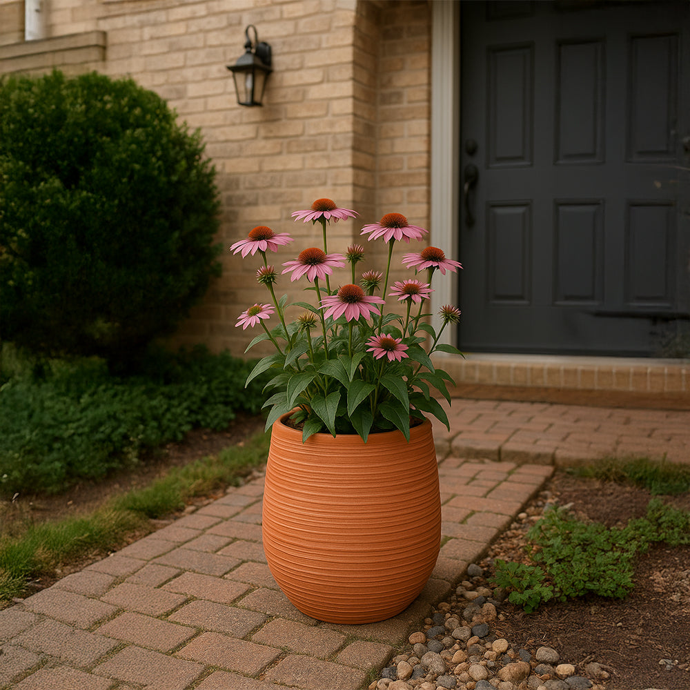 Dieser handgefertigte, gerippte Terrakotta-Pflanzkübel in Fassform verleiht jedem Ambiente rustikalen Charme. Erhältlich in den Größen S, M, L und XL, eignet er sich ideal für Kräuter oder kleine Blüten auf Terrassen, Regalen oder im Eingangsbereich. Hergestellt aus natürlichem Ton, sorgt er für Atmungsaktivität und gesundes Pflanzenwachstum.