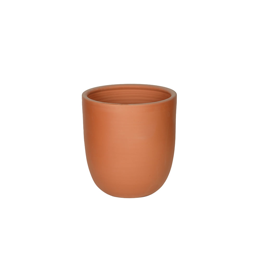 Der hohe, glatte Terrakotta-Blumentopf vereint handgefertigte Eleganz mit minimalistischem Design. Erhältlich in den Größen S, M, L und XL, eignet er sich perfekt für kompakte Pflanzen oder Küchenkräuter. Seine schmale Form und der natürliche Ton verleihen Regalen oder Fensterbänken eine zeitlose, natürliche Note.