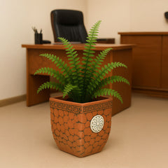 Esta maceta de terracota hecha a mano presenta una silueta cuadrada con un medallón en relieve que le da un toque rústico. Disponible en tamaños pequeño y mediano, es perfecta para hierbas, suculentas o pequeñas plantas de interior en encimeras de cocina, alféizares o patios pequeños. Su tono natural de arcilla y su textura artesanal aportan calidez a cualquier ambiente.