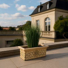 La maceta de exterior de terracota color crema presenta un cuerpo de arcilla de tonos suaves con textura de ladrillo vintage, perfecta para jardines con diseños tradicionales o contemporáneos. Su estructura artesanal y forma rectangular ofrecen amplio espacio para las plantas, garantizando durabilidad y transpirabilidad. Esta versátil pieza queda perfecta en patios, caminos o balcones, realzando cualquier espacio con su encanto natural.