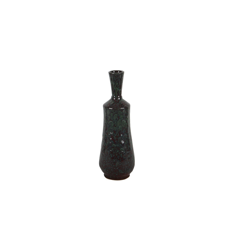 Jarrón de cerámica con cuello de botella de color verde intenso