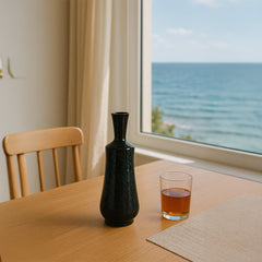 Con su intenso esmalte verde intenso y su elegante cuello de botella, este jarrón decorativo de cerámica hecho a mano destaca en interiores modernos y tradicionales. Su acabado brillante aporta dimensión y sofisticación, mientras que su forma alta y estrecha ofrece un recipiente refinado para flores de un solo tallo o como un detalle escultural independiente. Una pieza impactante para estanterías, consolas o para decorar la entrada.
