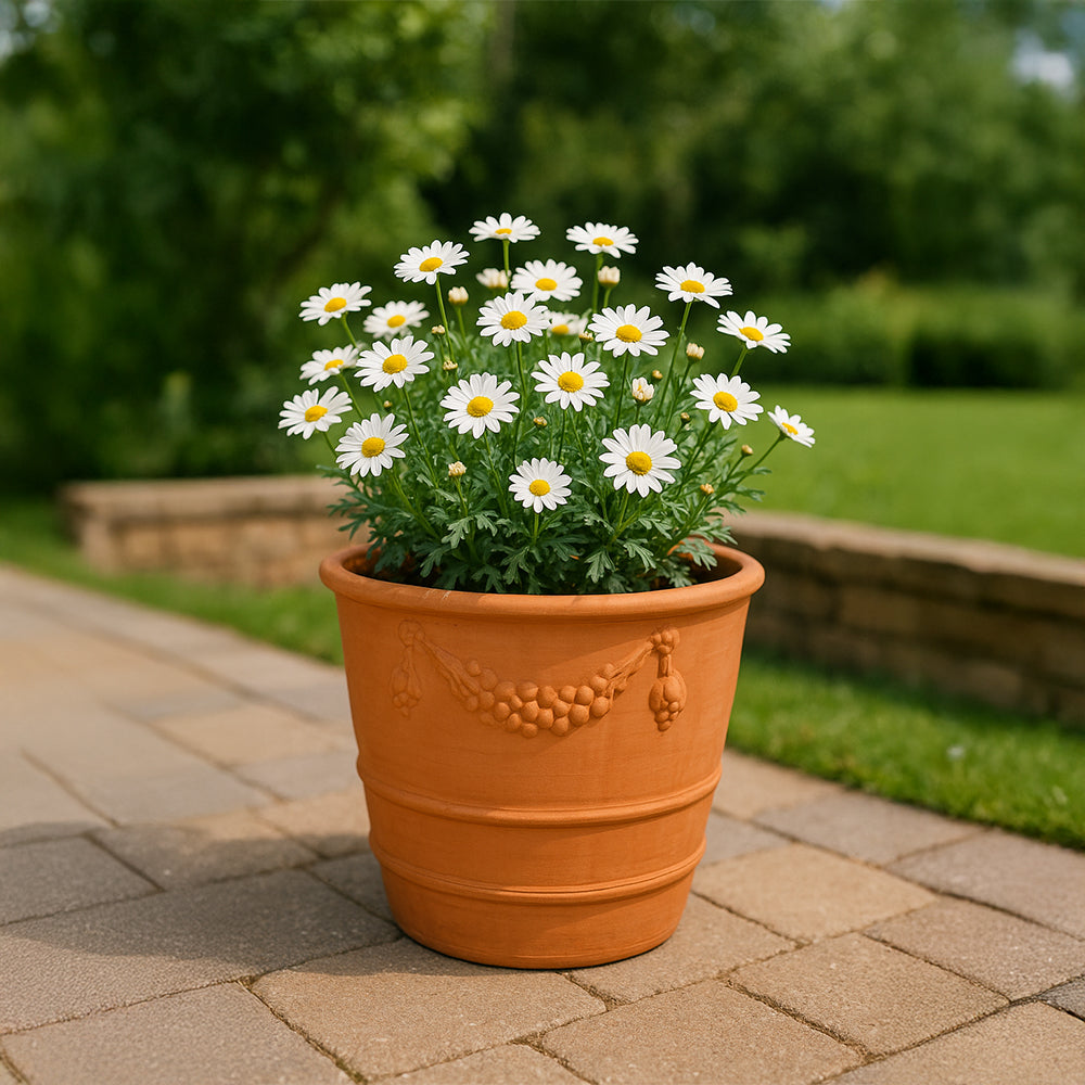 Maceta decorativa de terracota con borde de vid