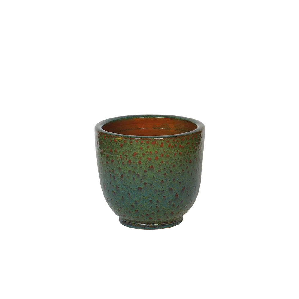 Hecha a mano en cerámica, la maceta Lava Moss presenta un esmaltado musgoso y una textura volcánica que le da un aspecto moderno y a la vez terroso. Disponible en tamaños pequeño, mediano y grande, es perfecta para suculentas, hierbas o plantas en estantes, escritorios o alféizares. Sus ricos tonos verdes y su acabado texturizado aportan un toque artesanal a cualquier espacio.