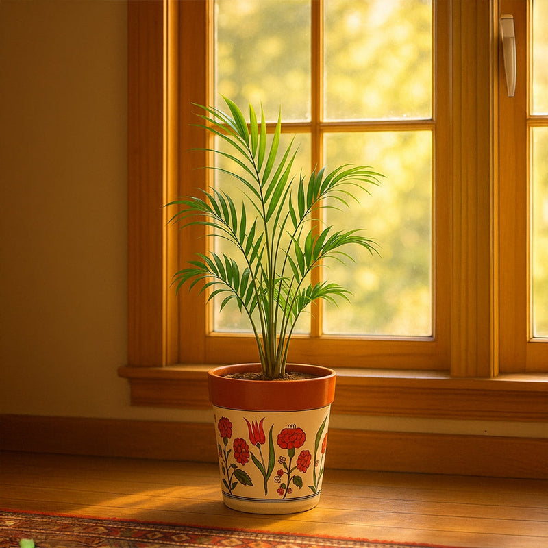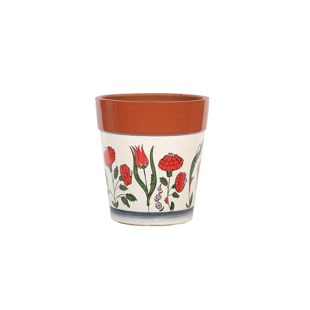 La maceta decorativa de terracota esmaltada con flores rojas combina la calidez de la arcilla natural con la elegancia de los motivos florales pintados a mano. Con vibrantes tulipanes y claveles rojos, esta pieza artesanal es ideal como maceta de terracota o como elemento decorativo de interior. El esmaltado brillante realza su encanto artesanal, a la vez que ofrece durabilidad para uso tanto en interiores como en exteriores. Una combinación perfecta de artesanía y carácter para los amantes de la jardinería.