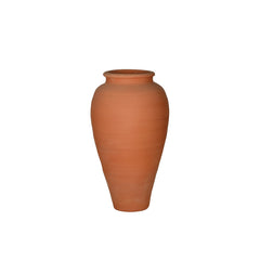 Esta jardinera alta de terracota, hecha a mano, presenta una textura de arcilla natural y una forma esbelta que le da un toque cálido y artesanal. Disponible en tamaños pequeño, mediano y grande, es ideal para arreglos florales o como pieza decorativa independiente, aportando encanto a interiores rústicos o modernos.