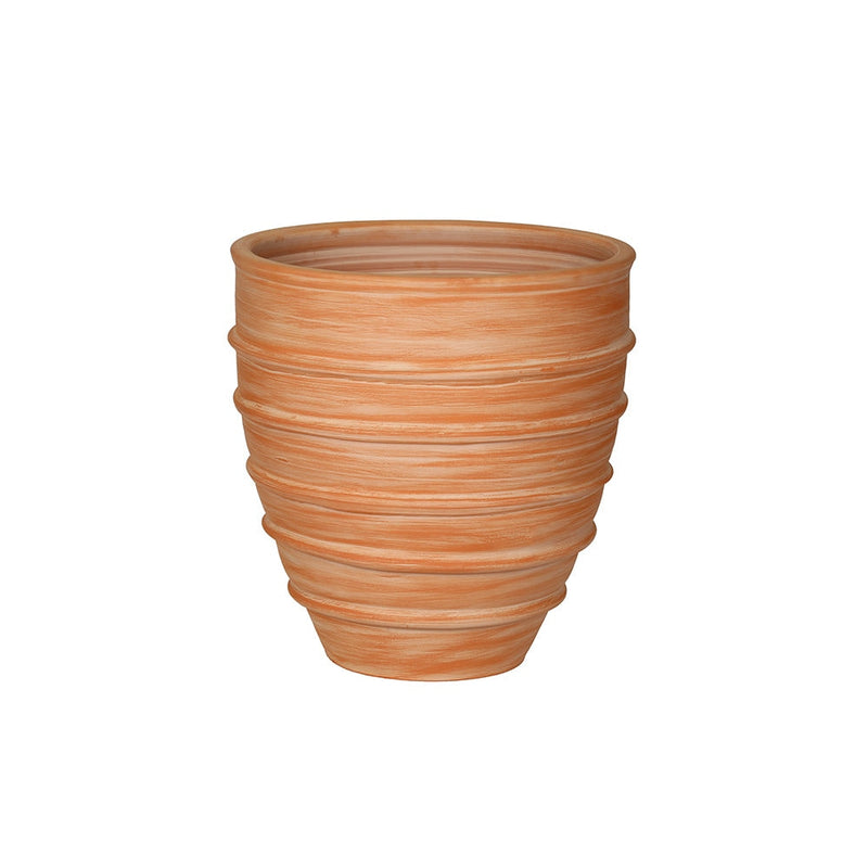 Jardinera decorativa de terracota con forma de rayas