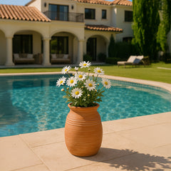 Hecha a mano con esmero, la maceta decorativa de terracota con borde en espiral luce un diseño artístico que aporta movimiento visual y encanto a cualquier espacio. Su superficie de terracota natural le da un toque rústico y refinado, perfecto para jardines interiores y exteriores. Ideal para hierbas, flores o follaje decorativo, esta maceta artesanal aporta calidez y estilo mediterráneo a patios, entradas o salas de estar con su presencia orgánica y elegante.