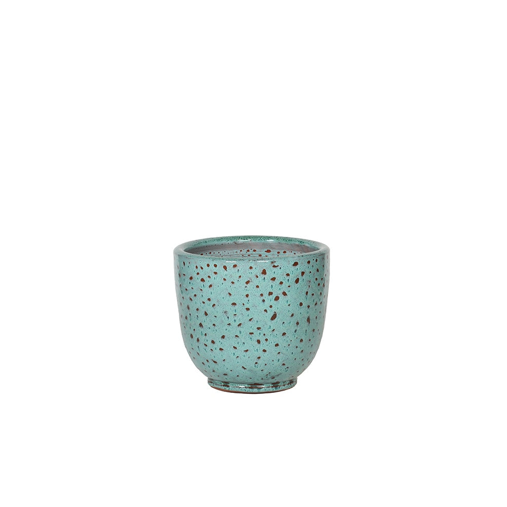 Hecha a mano con un esmalte de lava turquesa, esta maceta de cerámica añade un toque de color a cualquier espacio. Disponible en tamaños pequeño, mediano y grande, es perfecta para suculentas o mini helechos en escritorios o alféizares. Los tonos azul verdosos y la textura orgánica crean un aspecto natural y artístico con un encanto artesanal.