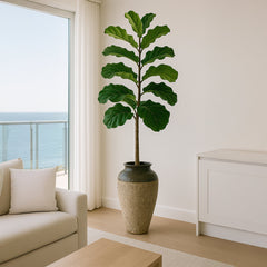 Beige Top Textured Decorative Ceramic Planter features a hand-applied textured surface and a smooth light beige upper section for contrast. The handmade ceramic form blends rustic charm with a refined finish, making it ideal for contemporary interiors or covered patios. Whether used as a centerpiece or plant holder, it brings a natural yet elevated feel to any decorative arrangement.