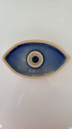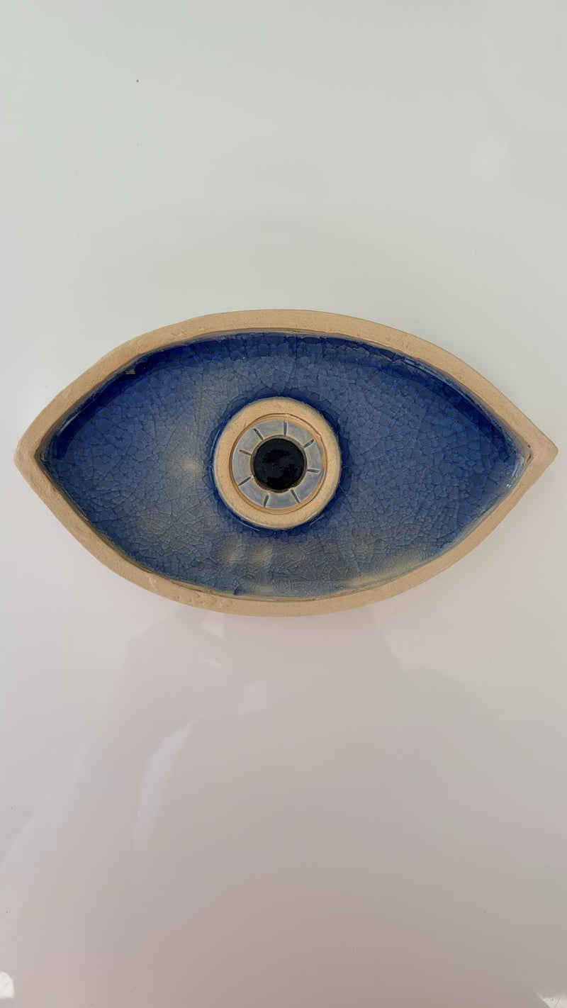 Blue Evil Eye Ceramic Wall Art blends handcrafted charm with ancient symbolism. The handmade ceramic surface features a vibrant blue palette and the iconic eye motif, believed to offer protection and ward off negative energy. Ideal for boho interiors, entryways, or meditation spaces, this piece brings cultural depth and visual interest to your decor. No two items are exactly alike, reflecting its artisanal character.