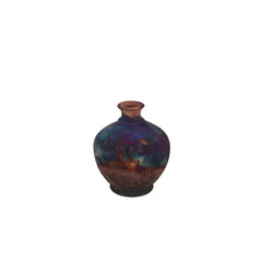 Cosmic Raku Round Body Ceramic Decorative Vase radiates otherworldly charm with its rich fusion of iridescent blue, violet, and copper tones. Shaped with a soft round form and narrow flared neck, this handmade vase brings artisanal depth and a dramatic focal point to any space. Raku firing creates unpredictable, one-of-a-kind surface patterns, making each piece a stunning blend of craftsmanship and natural beauty—perfect for eclectic or modern interiors.