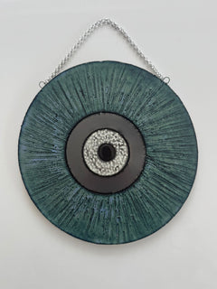 Radiating a bold, handcrafted presence, the deep teal ceramic sunburst wall art brings symbolic beauty and cultural depth to modern interiors. Featuring a striking Evil Eye-inspired motif, it adds a layer of protection and artistic flair to any wall. Each piece is handmade and finished with a rich teal glaze, resulting in subtle variations that make every artwork one of a kind. Perfect for hallways, living rooms, or entryways.