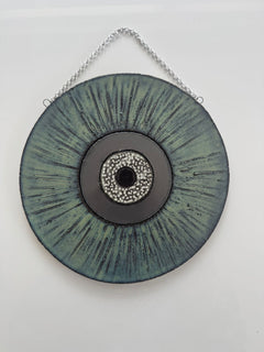 Handmade from ceramic and finished in a vibrant green glaze, the sunburst wall art blends modern aesthetics with symbolic charm. Its radial design evokes the energy of the Evil Eye, making it both decorative and meaningful. Ideal for entryways, living rooms, or gallery walls, it adds texture, depth, and cultural resonance to your space. Each piece carries slight variations that highlight its handcrafted nature.