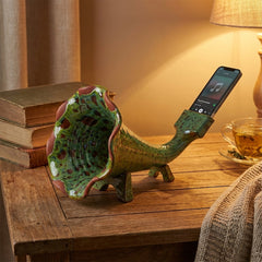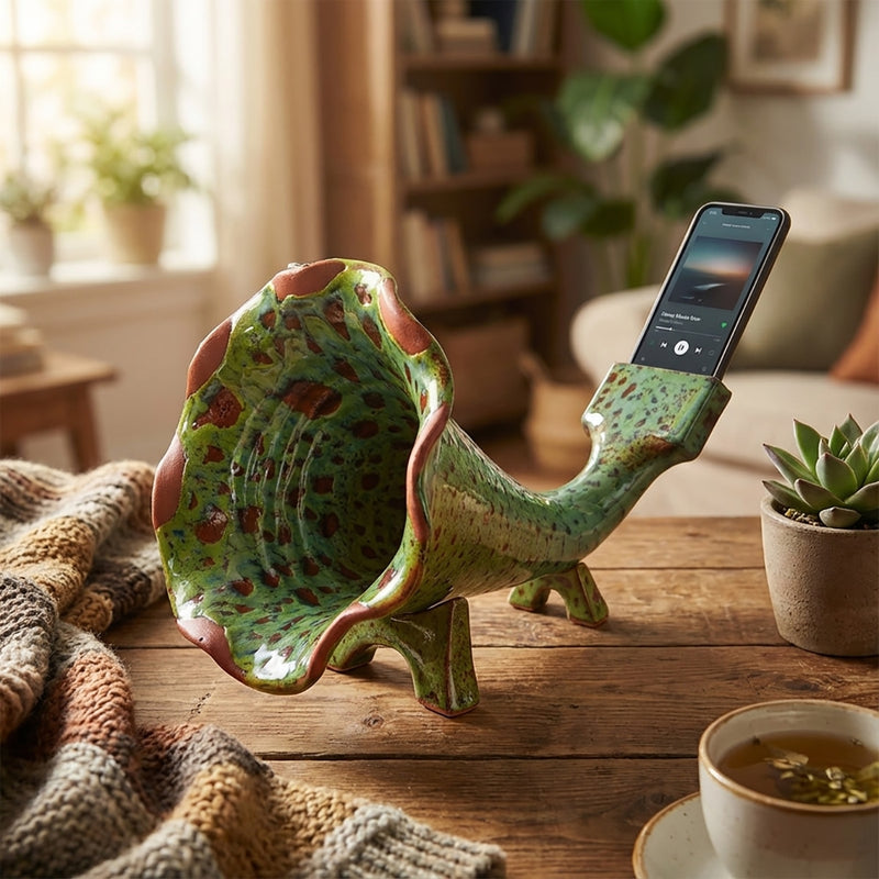 Blending vibrant color with playful functionality, the Pistacchio Lava Ceramic Phone Amplifier is a handcrafted ceramic piece that naturally boosts sound without cables or electricity. Its trumpet-like form enhances audio directly from smartphones, while the bright pistachio green lava glaze with terracotta tones adds a bold artistic accent to desks, shelves, and side tables. Both decorative and practical, it stands out as a unique handmade gift idea for lovers of color and design.