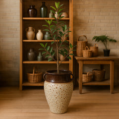 Speckled Cream Brown Decorative Ceramic Planter showcases an organic, handcrafted charm with its soft cream tones and natural brown speckles. Made entirely by hand, this ceramic planter adds a warm, artisanal touch to both modern and rustic interiors. The rounded form is ideal for medium-sized houseplants or succulents, and the neutral palette complements a wide range of decor styles—from minimalist to bohemian.